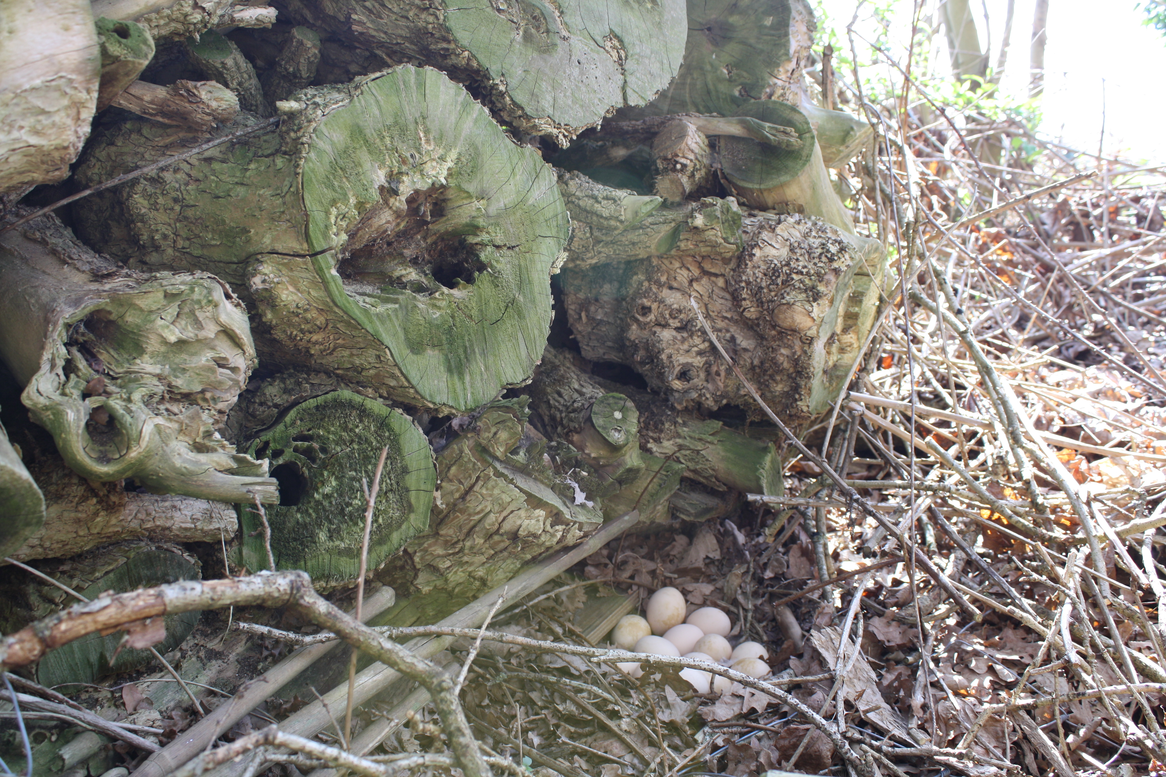 En wat dacht je… 13 !!!!!! eieren. Als het wat verder in de tijd is, zal ze voedertijd overslaan en zich helemaal wijden aan haar kinders in de dop en komt er dan vrijwel niet meer van af. Schoonva zal er dan een rennetje omheen bouwen om te voorkomen dat de marter en de vos het feestje komen verstoren.