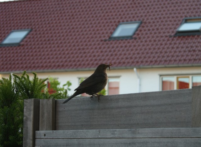 Hieronder nog even moedermerel, die mooi voor me poseerde in het avondlicht. Zou ze vannacht ook gewoon slapen?