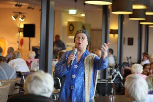 Pas echt onder de indruk raakte ik van haar, tijdens haar optreden. Ze richtte zich naar het publiek alsof ze iedereen persoonlijk kende. Het was één groot warm bad. Ze sprak vooral de Indische mensen aan, legde een arm om hen heen en zong samen met hen oude Indische versjes. Mensen die me normaal helemaal niet zouden opvallen, zette zij in de spotlights. Heel bijzonder om te zien. De zaal (ruim 100 man) hing aan haar lippen en ze straalde een soort rust uit, waar iedereen rustig van werd. (Including me)