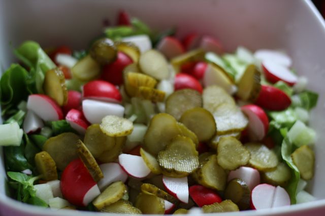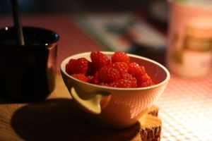 Zaterdagavond hadden we Annelies en Simon te gast. Daarom de tafel feestelijk gedekt en de keuken in gedoken; Pilaf en salade en als toetje yoghurt met frambozen. Voor de gelegenheid hadden we oma’s rozen-servetten uit de kast gehaald. Deze werden met zulk respect behandeld dat ze naderhand (nog steeds) schoon, de kast weer in konden 🙂 Bij de koffie aten we Sanders appeltaart (met laagjes jam en spijs) en een dikke klodder slagroom. We kwamen dus weer helemaal niets tekort.