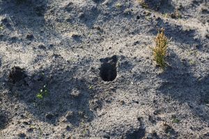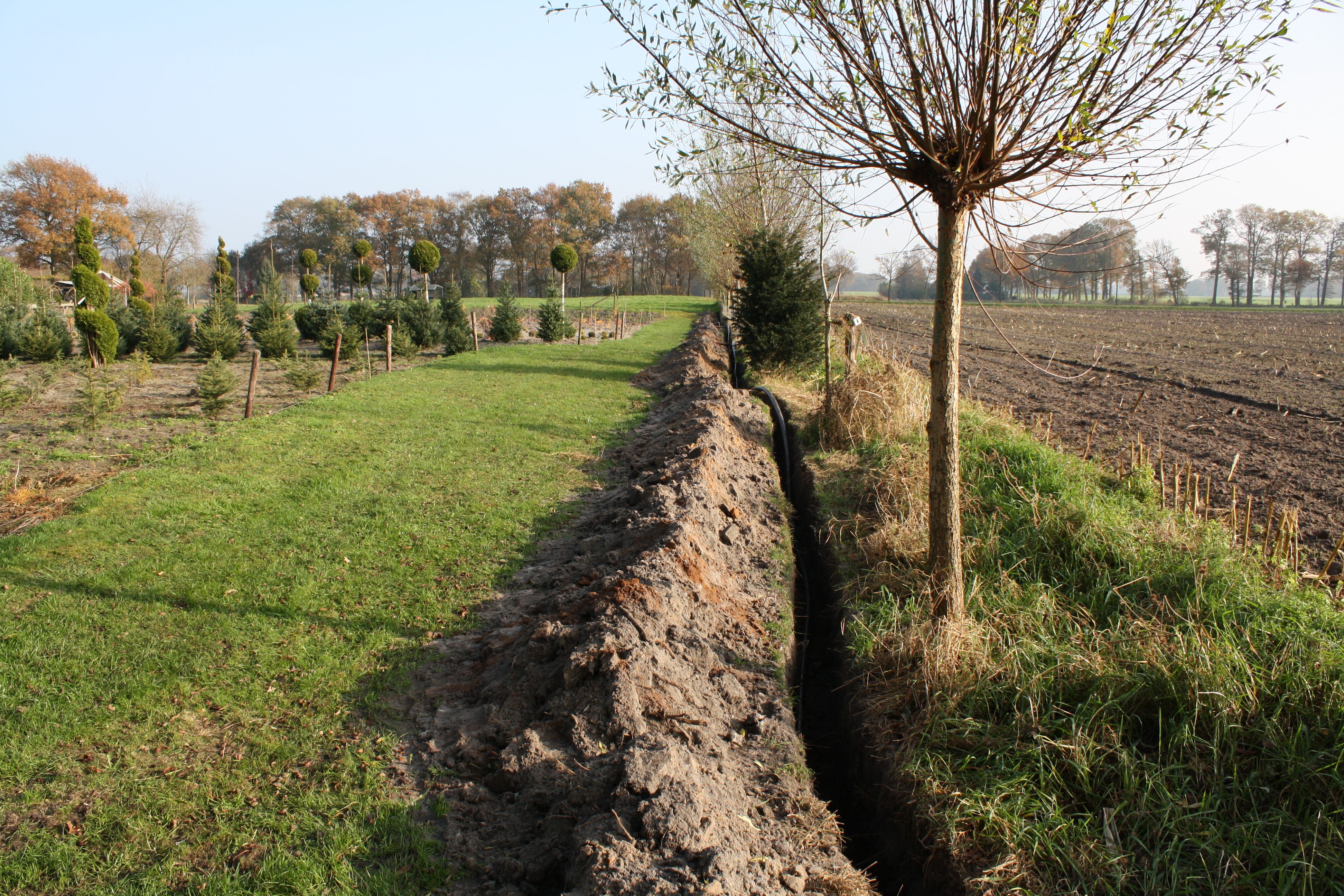 Leuk detail is dat hij tijdens het graven van een 45 cm diepe geul (foto2 ) een hele familie muis tegenkwam die verschrikt alle kanten op vloog. (Eigenlijk best sneu en helemaal niet zo leuk voor fam muis 🙂 ) Ook zagen we aan de sporen dat er ’s nachts reeën over de kwekerij hadden gelopen. We zien de reeën de laatste jaren bijna niet meer. Fijn te weten dat ze er nog zijn.