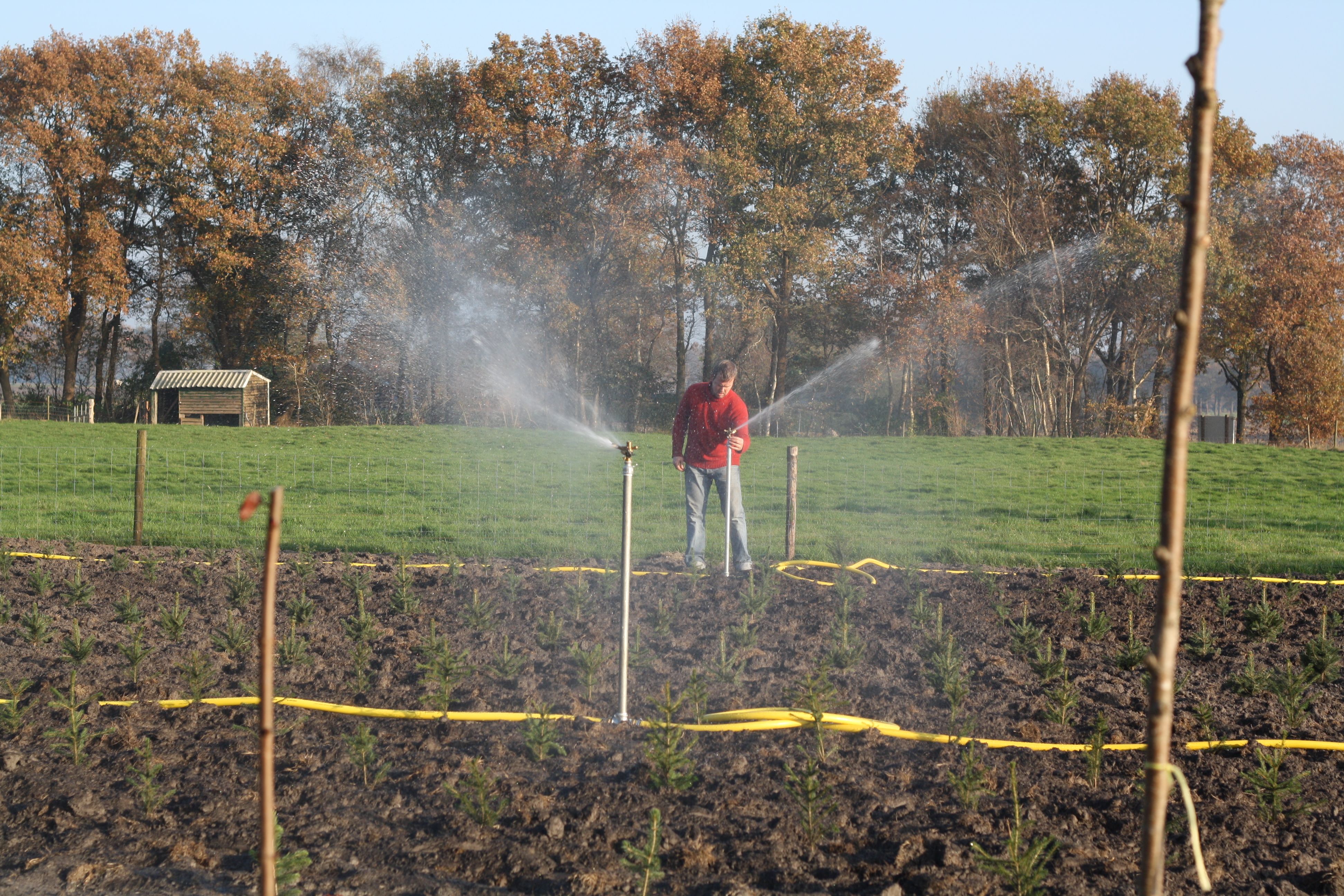Sander had deze week “vrij” om een beregeningssysteem aan te leggen op z’n kwekerijtje in Tiendeveen. Hij heeft er weken op gepuzzeld, over gedroomd en over gepraat, maar na een week buffelen is het zover: “Hij doet het!” SANDER BLIJ (en bekaf). Potverdikkie, wat kan hij een hoop werk verzetten. Ik sta er versteld van en stiekem hijzelf ook wel een beetje.