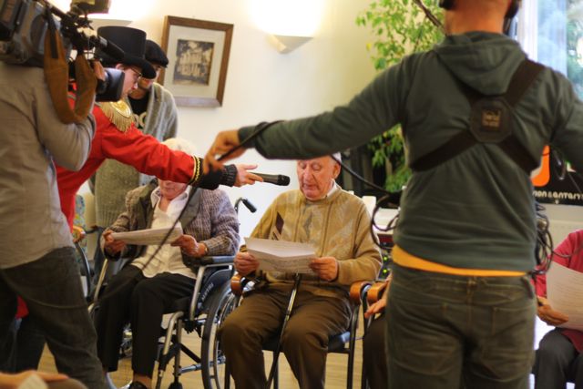 Lieve lezers, zoals jullie wel hebben begrepen, had ik de laatste weken weinig tijd voor m’n blog. Ik zit nóg midden in de drukte (vanavond nog een kerstdiner 100 man, morgen ballen signeren FC Twente, daar later meer over) maar wil jullie toch alvast mee laten genieten van onderstaande foto’s. Een van de dingen waar ik druk mee was, was namelijk het bezoek van Giel (en zijn gevolg) voor serious request op m’n werk. Het was een waarlijk feestje en ik stroom over van het kerstgevoel. De uitdaging was dat Giel samen met ouderen een rap moest maken over het goede doel “moeders in oorlogsgebieden“. De rap van 20 zinnen werd door onze burgmeester Frank Kerkhaert beloond met een cheque van 4000 euro. JOEHOE!!! Errug leuk om allemaal mee te maken.