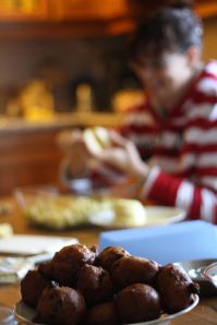 Met de trekker over de grote weg, paardenmest ophalen bij een nabij gelegen paardenboer. Poep scheppen in de regen en dan weer een mooi stukje rijden. Verder maakte ik op verzoek foto’s van Monieks familie, waar vers gebakken oliebollen op de keukentafel stonden. Monieks moeder leidde me rond in haar hebbedingen-museum waar “mooi” en “lelijk” dicht bij elkaar lagen 😉
