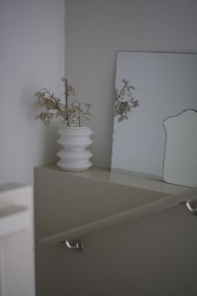 Ons trappenhuis is eigenlijk nog helemaal wit en smeekt om een beetje opleuking. Op één of andere manier kwam het er steeds niet van. Tot nu; bovenstaande foto’s zijn het bewijs. Door zo’n slimme tijdschakelaar brand het sterretje op de tijden dat wij daar in de weer zijn 🙂 Ik denk dat we binnenkort wat meer kleur in de brouwerij gaan brengen. De pot met citroengele verf staat al klaar.