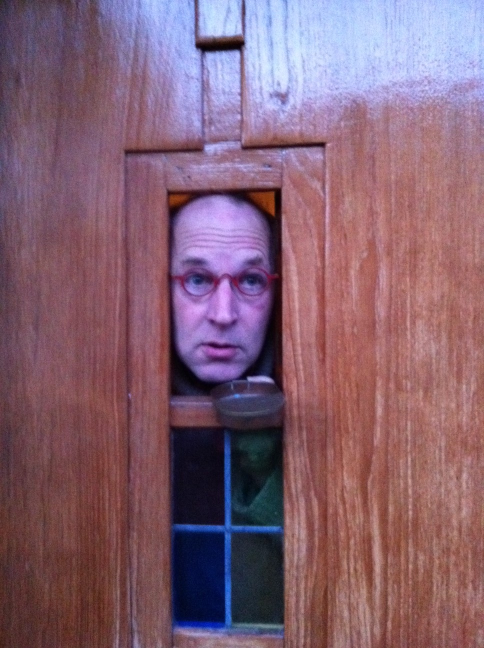 En mocht je een voorzichtig type zijn, dan is zo’n deur met een klein opendraaiend raampje een top uitvinding. Op onderstaande foto ziet u een meneer die dit vanavond voor me wilde demonstreren. 🙂