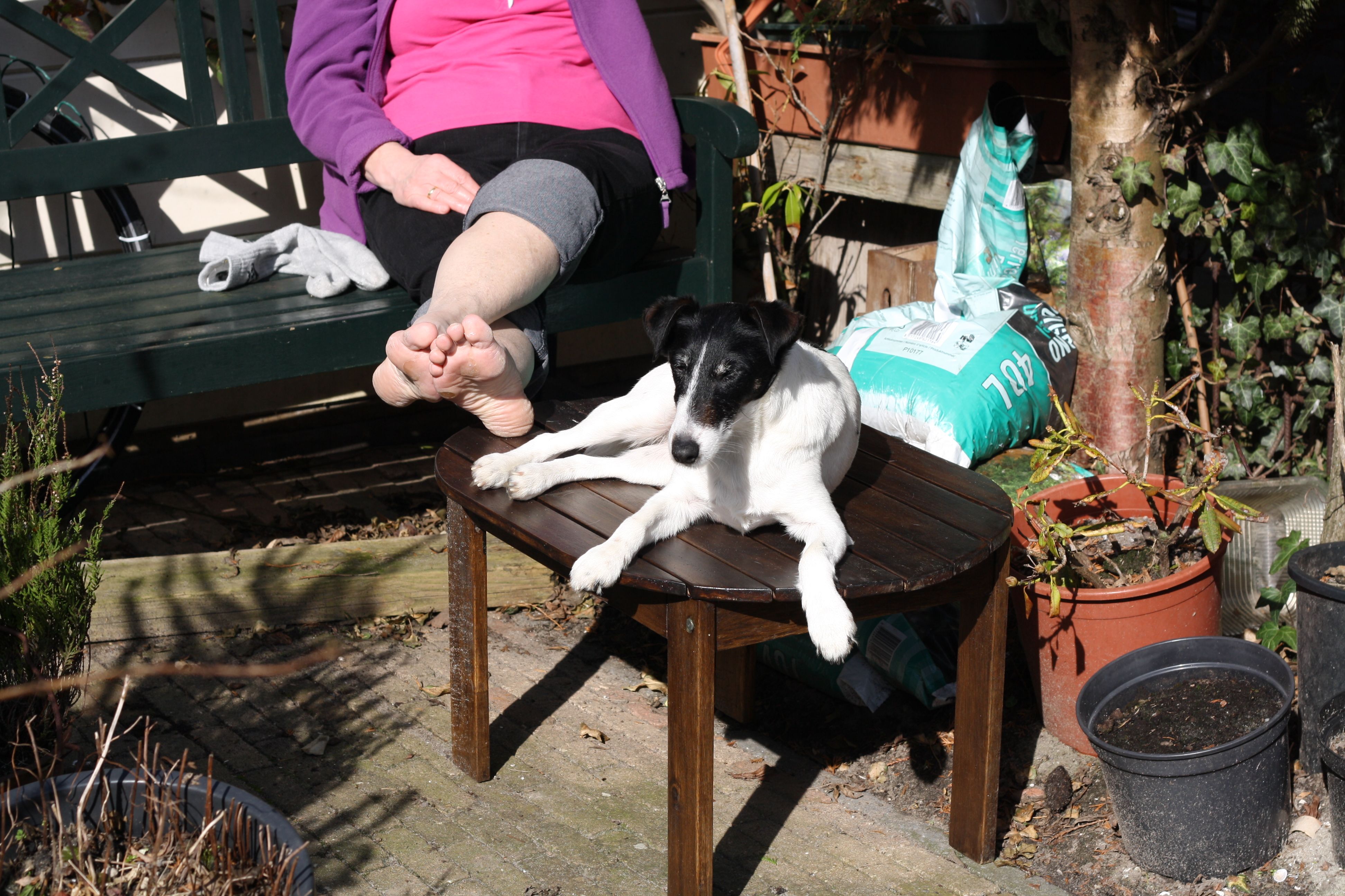 We genoten allemaal heel erg van de 1e zonnige dag. Iedereen kwam naar buiten, zocht de zon op en maakte zo hier en daar een praatje over de heg.
