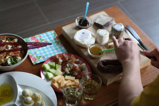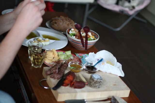 haha….ik ben zelf eigenlijk de kok thuis. Ik ben dol op koken, en mijn hubby vind het allemaal wel prima. Hij kan best koken, maar ik doe het liever zelf 🙂 Hij is wel iemand die vanuit het niets een heleboel lekkers mee kan nemen waar we dan heerlijk van smullen. Dingen zoals wat jij hebt liggen…worst, kaas etc etc….heerlijk!