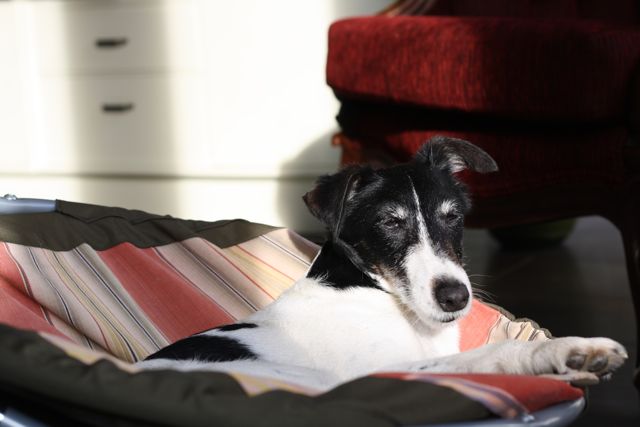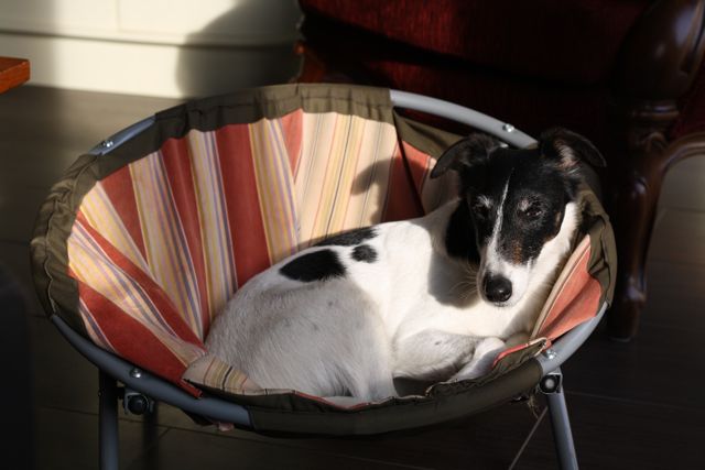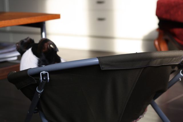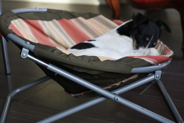 Het is bijna slaapverwekkend om te zien hoe lekker Sonja in haar Happy House hangmandje kan liggen pitten. Aangezien een nieuw kussen best prijzig is ( 40 euro) besloot ik er zelf een te maken. 3 middagen verder (na 5 keer uithalen, een kilo frustratie en 2 klosjes garen) is dit het eindresultaat. Het wint niet de schoonheidsprijs, maar daar lijkt Sonja niet zo mee te zitten. Aangezien ik nu weet hoe het moet, neem ik me voor om er binnenkort nog eens op nieuw te beginnen. Respect voor de dames in China die me voor gingen. (ps: Ik gebruikte de oude tijken van mijn moeders beppe.)