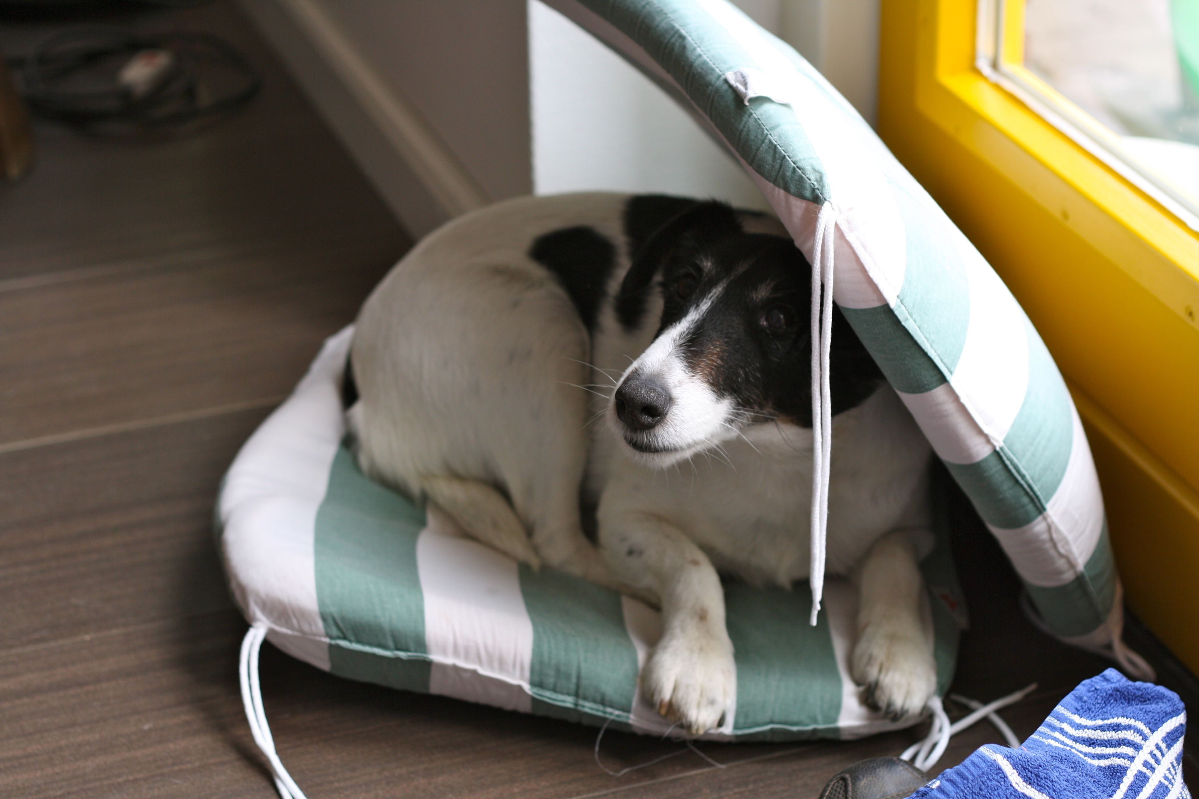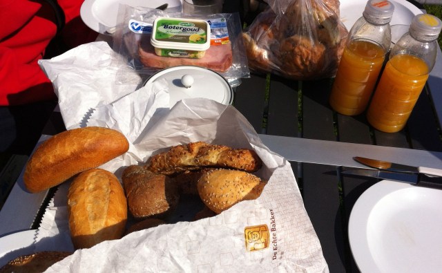Op hemelvaartsdag vertrokken we om 09.00 uur met de brommer richting Delden. Daar kochten we broodjes bij de bakker en reden door naar Deurningen, voor een ontbijt op de camping bij m’n ouders. Twente is echt prachtig! We reden door Twickel, langs de velden, bossen en mooie boerderijtjes. Onderweg kwamen we hordes dauwtrappende jongeren op de fiets tegen. Blijkt heel normaal hier, in ’t oosten des lands. We keken onze ogen uit. Eenmaal uitgebrommerd, luierden we in onze tuin. Sonja (onze hond) kreeg het voor elkaar om tussen 2 kussentjes een slaapje te doen. Wat heerlijk toch, zo’n extra vrije dag!