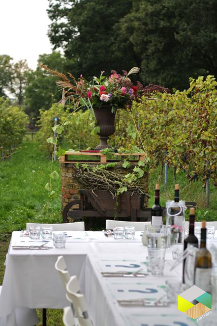 Vrijdag gingen we “Etten in de Achterhoek”. Een 3 gangen diner met producten van lokale boeren, waarbij je pas 48 uur van tevoren wordt ingelicht over de locatie……ergens in de Achterhoek. De tomtom bracht ons in een prachtig landschap waar de tafels stonden gedekt in een wijngaard. Hoe idyllisch wil je het hebben!? Het wordt 1 keer per maand georganiseerd. Meer weten? kijk dan op www.gaon.nl
