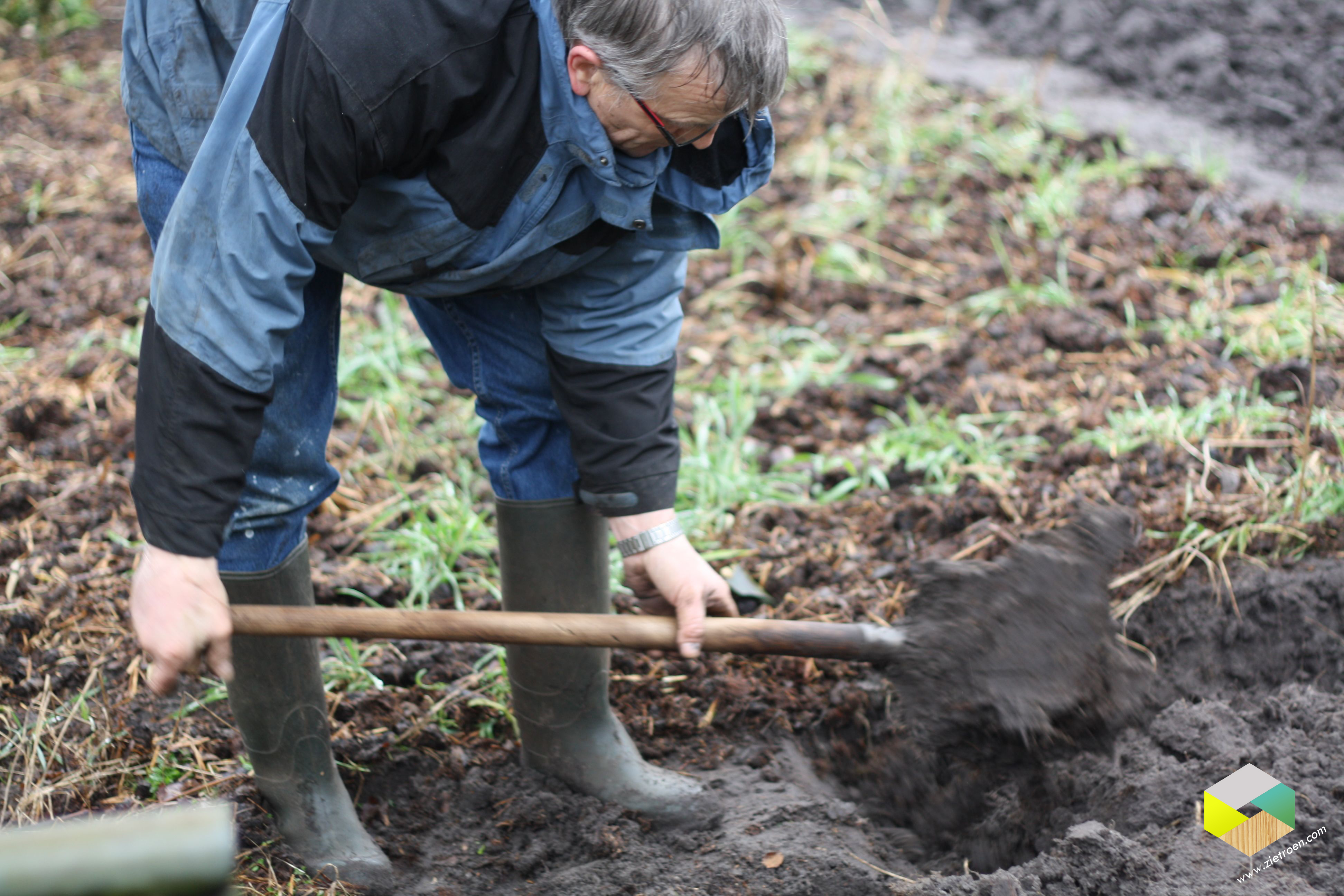 Een lesje moestuin van Hendrikus: in augustus (na de aardappeloogst) rogge zaaien als groenbemester. In het najaar oude paardenmest opbrengen. In maart de mest eronder spitten door een geul (zogenoemde voren) te spitten, dan de rogge/mest op z’n kop in de geul te gooien en dan een laag grond erover. Dit rij voor rij herhalen. Nu maar wachten tot het 1 april wordt, dan kunnen de pootaardappels erin.