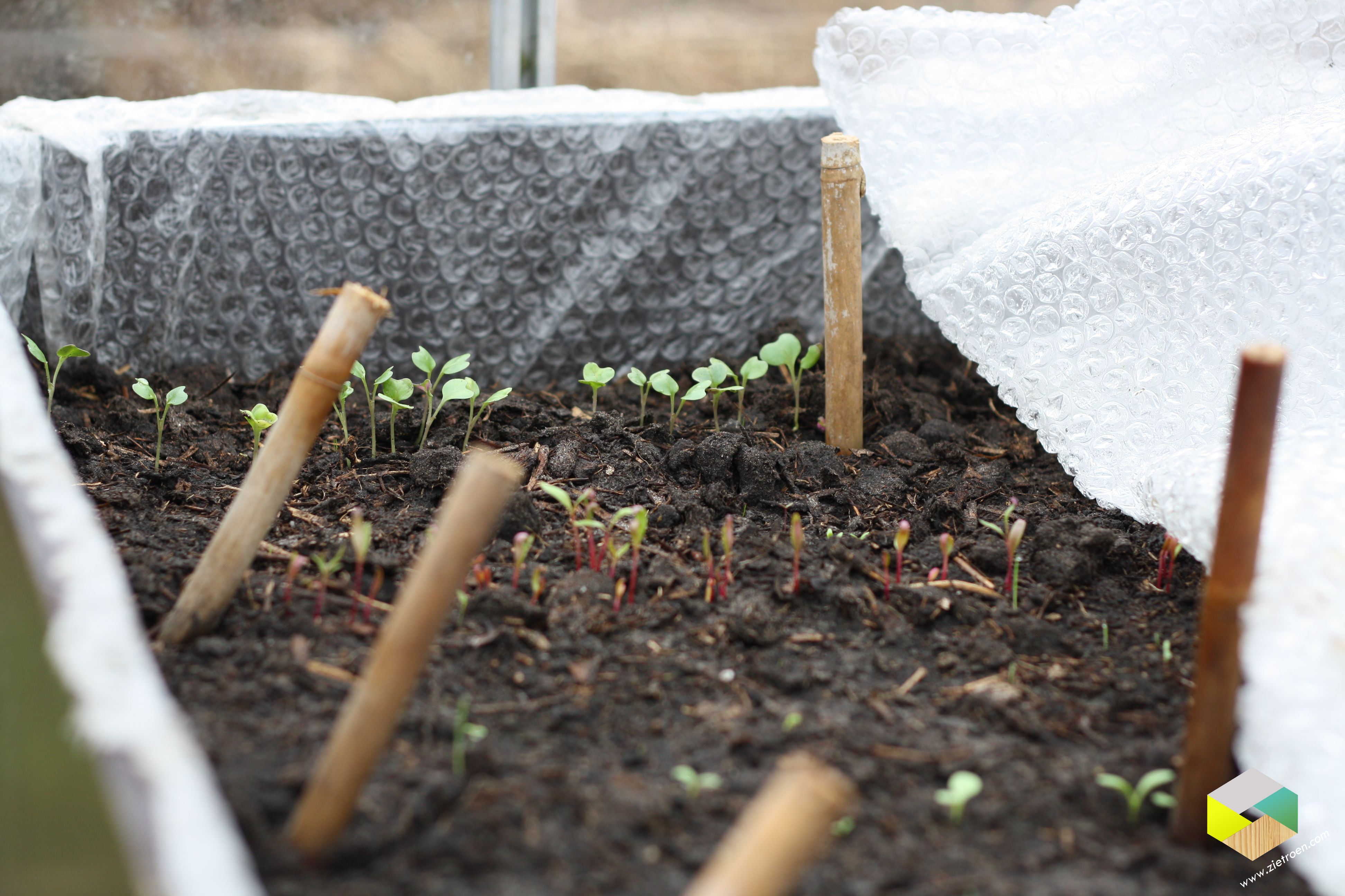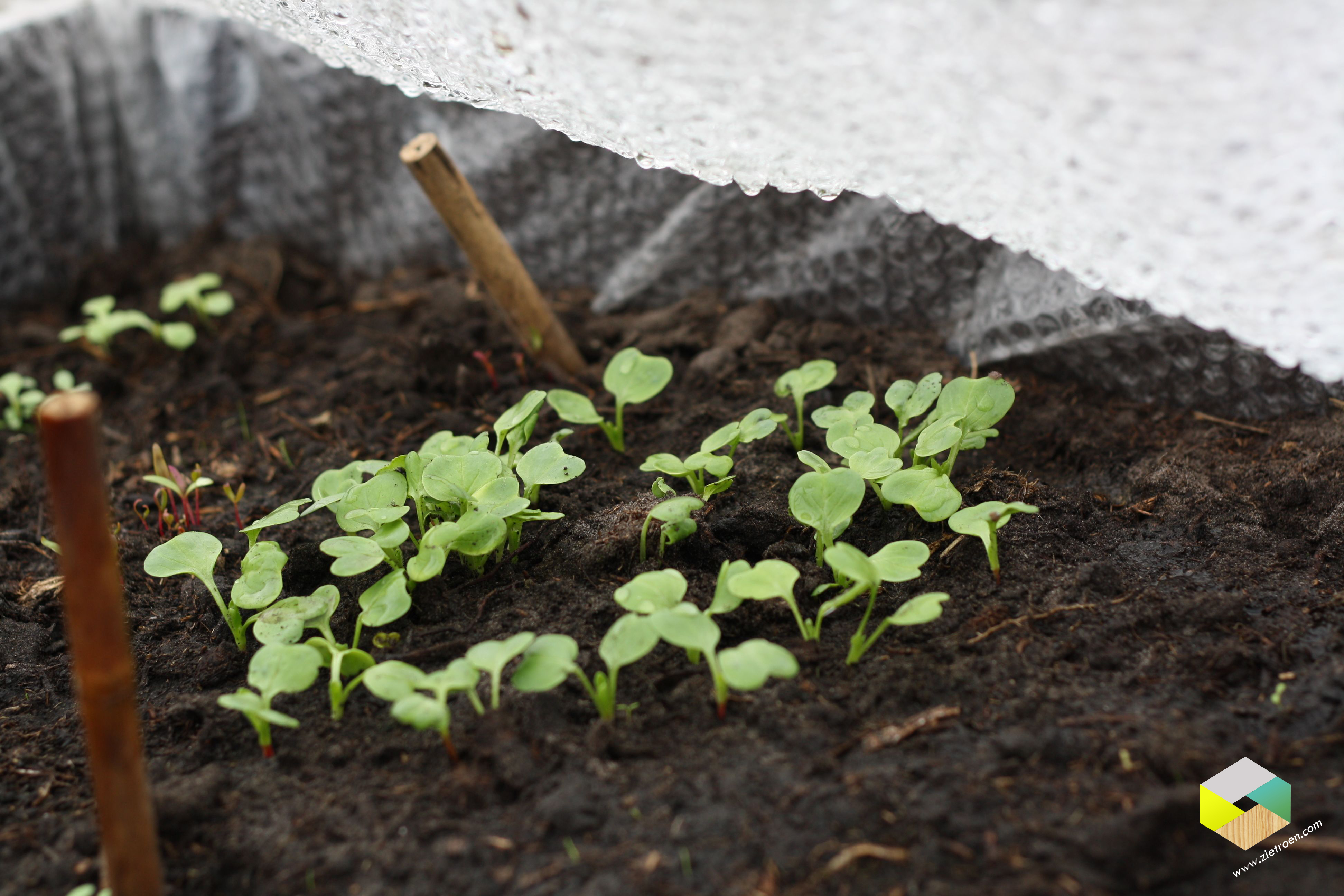 In de kas staan al boven de grond: radijsjes, rode bietjes en spitskool. We kunnen ze wel uit de grond KIJKEN!