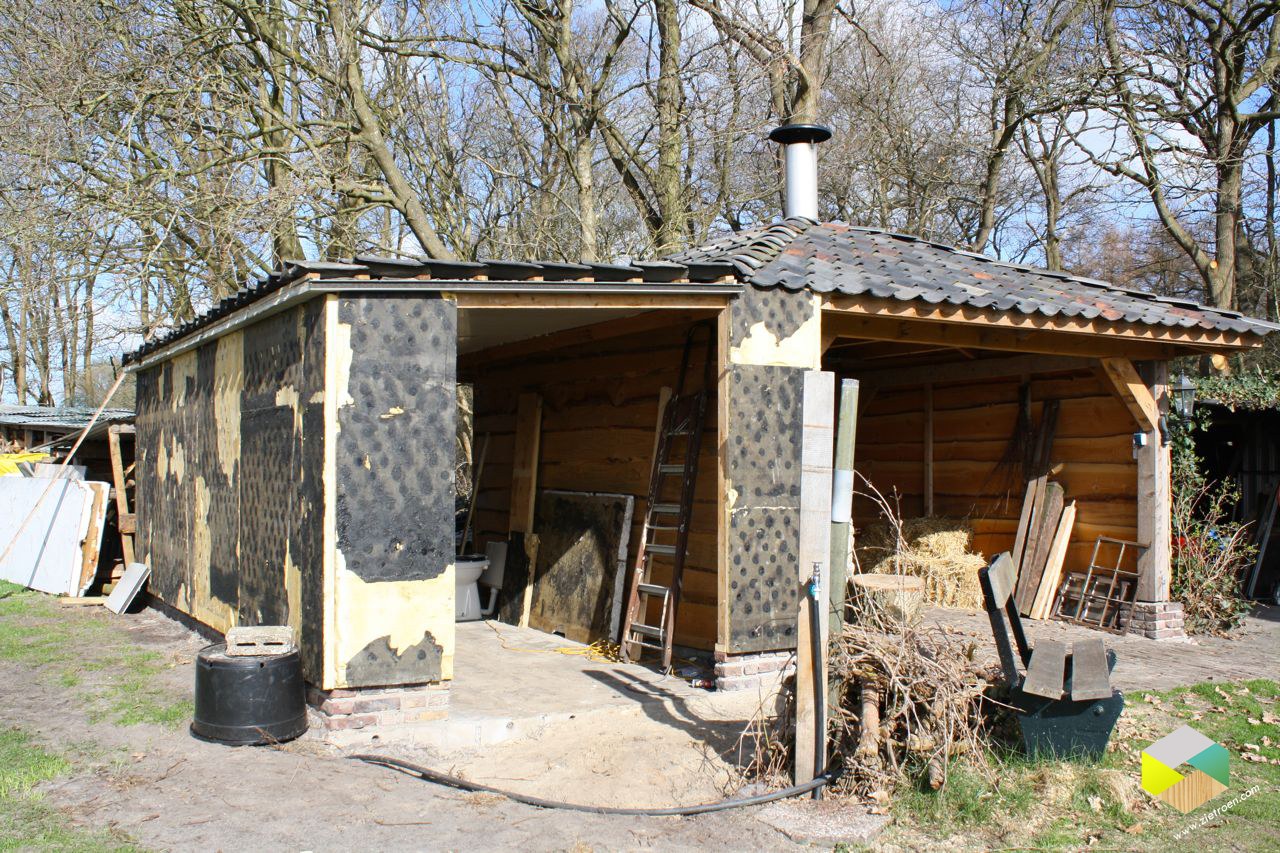 Het was geen straf om dit weekend onkruid te trekken, lekker in het zonnetje. Kruiwagens vol kwamen er van af! En als de kwekerij er dan zo mooi schoon bij ligt als op de 1e foto, zijn we best een beetje trots. Het nieuwe werkhok van Hendrikus schiet ook al flink op. De oude stalraampjes op de 4e foto gaat hij er nog in zetten. Hij heeft ook besloten er een toilet in te maken. Handig als we achter op het erf zitten te bbq’en op de nieuwe vuurplaats 🙂 Hij maakte het allemaal met z’n eigen handen, zelfs het verstelbare bbq rooster.