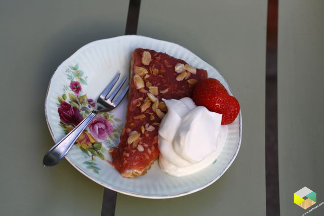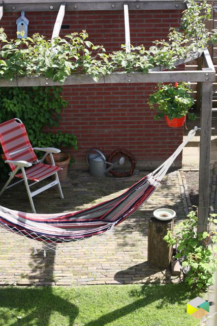 Ik maakte rabarber monchou taart en strooide er wat geroosterde amandelstukjes bovenop. Natuurlijk van rabarber uit de moestuin in Tiendeveen. Een lekker fris taartje! Het recept vond ik hier. Verder genieten we enorm van de zon en ons tuintje. Ik lees momenteel “De ontdekking van de hemel” en kan dus (gezien de dikte van het boek) aardig wat uurtjes doorbrengen in de hangmat.