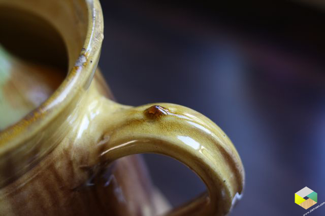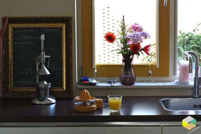 De geel bruine pot staat te pronken op het aanrecht. We doen er de uien en knoflook in. In de deksel zitten gaten, dus misschien is hij hier oorspronkelijk ook voor bedoeld. Verder kocht ik op de rommelmarkt een elektrische sinaasappelpers. Sander perst al zo lang ik hem ken, elke morgen sinaasappeltjes uit. Maar dan met zo’n ijzeren handpers (zie foto 5 links). Deze elektrische haalt veel meer sap uit de sinaasappel, super!