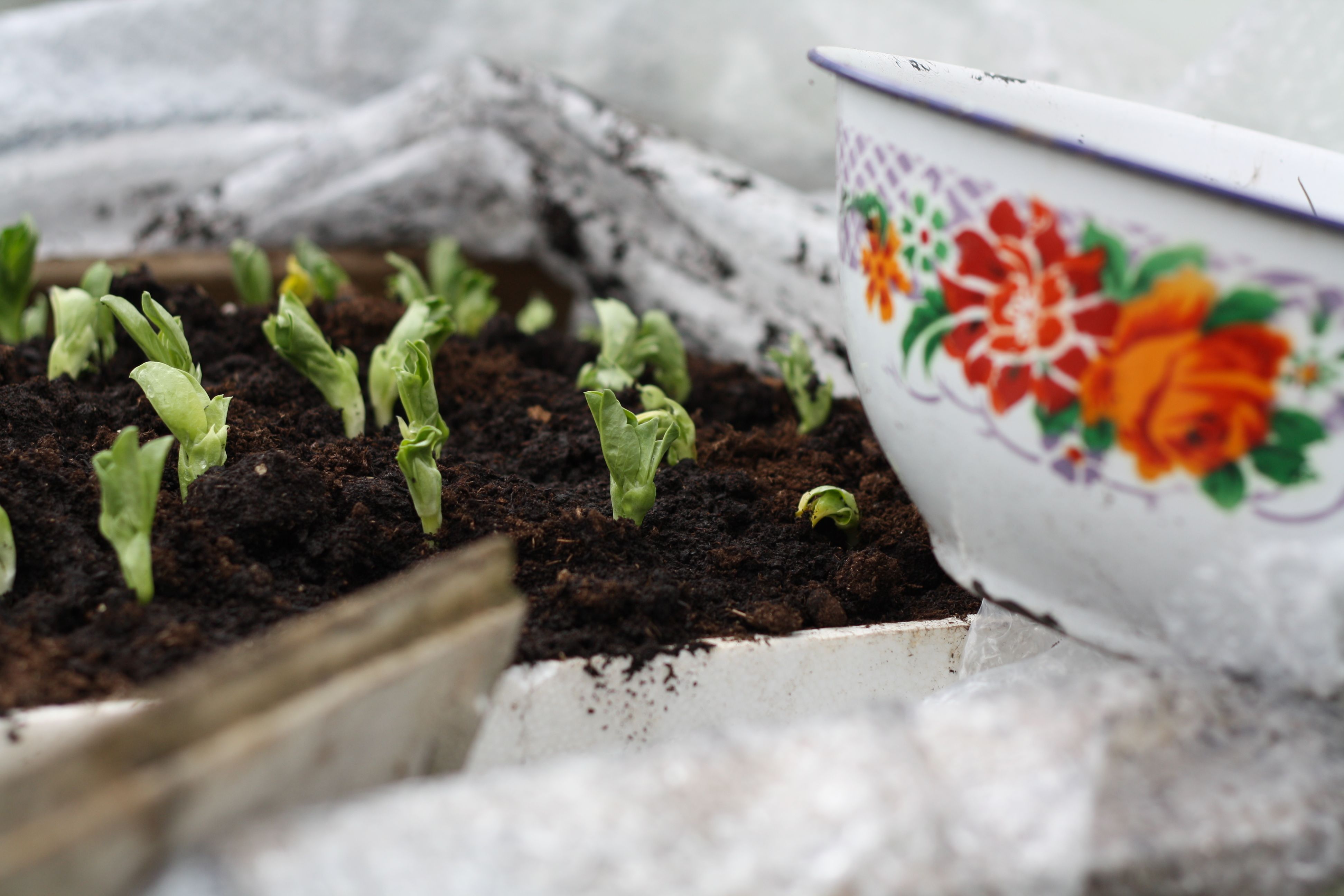 eerste plantjes in de kas