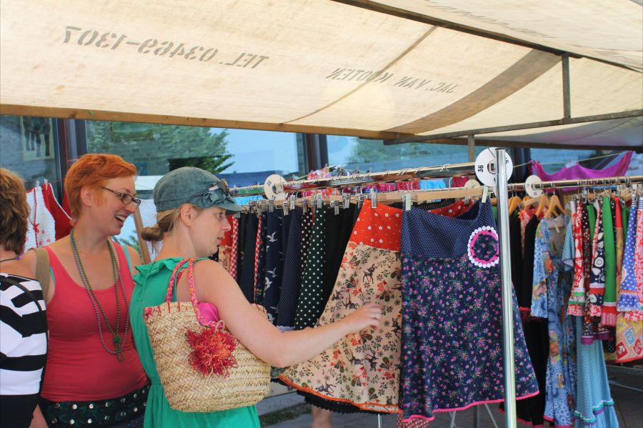 Mieke voldaan van het shoppen